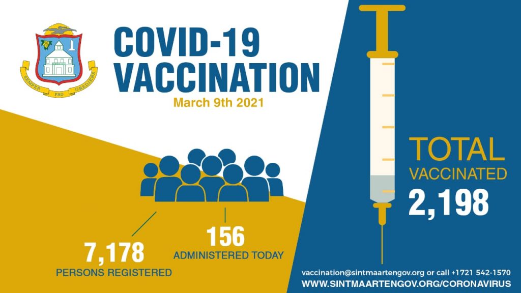 If you haven’t done so already, please register for the vaccine(also if you are under 60 years) using the online registration link: https://forms.sintmaartengov.org/form.aspx?v=OGtn05kNmb ,or via a paper-based registration form, which can be picked up at several locations, including Collective Prevention Services (CPS) at the Vineyard Office Park Building in Philipsburg, the Division of Labor Affairs at the Simpson Bay Public Service Center in Simpson Bay, Doctors’ offices, the Government Administration Building, and select pharmacies.