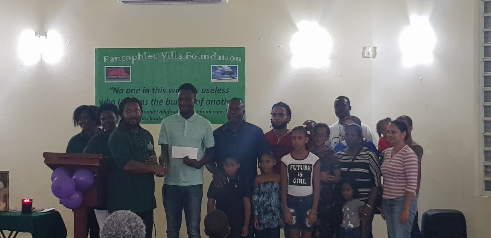 President of the Pantophlet Villa Foundation, Mr. Riegnald “Bakari” Arrindell thanked the community for their continuous support and “giving what they can” over the years whether it’s the purchase of tasty homemade journey cake or a handsome cash donation. He encouraged the audience to support the Foundations “Help a Parent” project by donating as little as Naf 5 per month. “Don’t only look at it as helping to cover a child’s contribution, but you are also bringing much needed stability to families living in fragile conditions”, he said.
