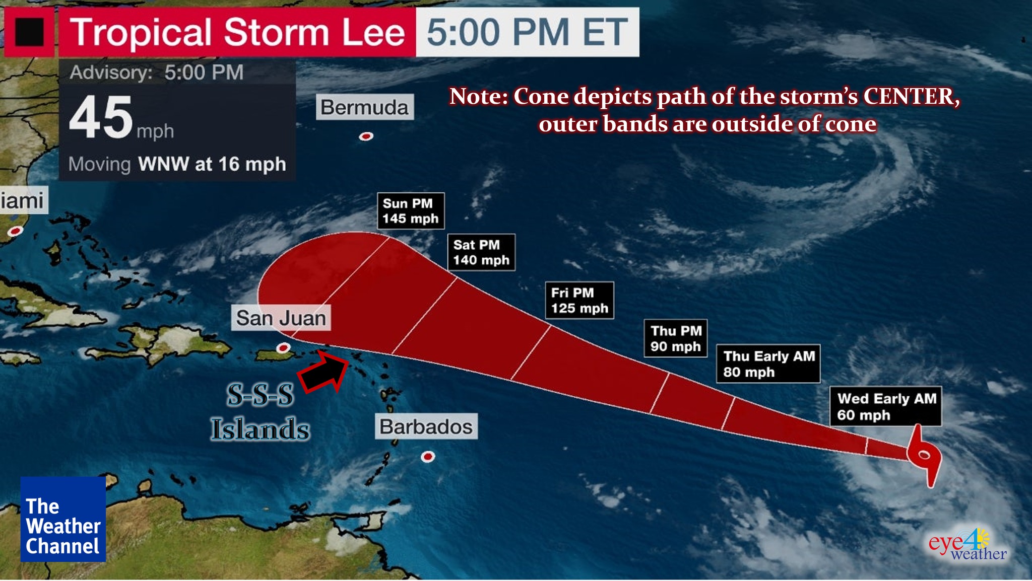 La Depresión Tropical #13 (anteriormente invest 95L) se formó a las 11 a. m. de esta mañana y luego se fortaleció aún más hasta convertirse en la tormenta tropical Lee a las 5:00pm, que ahora se encuentra a medio camino entre África y el Caribe.