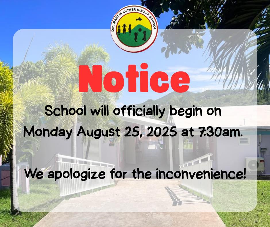 PHILIPSBURG, Sint Maarten – El Ministerio de Educación, Cultura, Juventud y Deportes informa al público que la inauguración oficial de Dr. Martin Luther King Jr. Primary School se pospondrá hasta el lunes 25 de agosto de 2025.