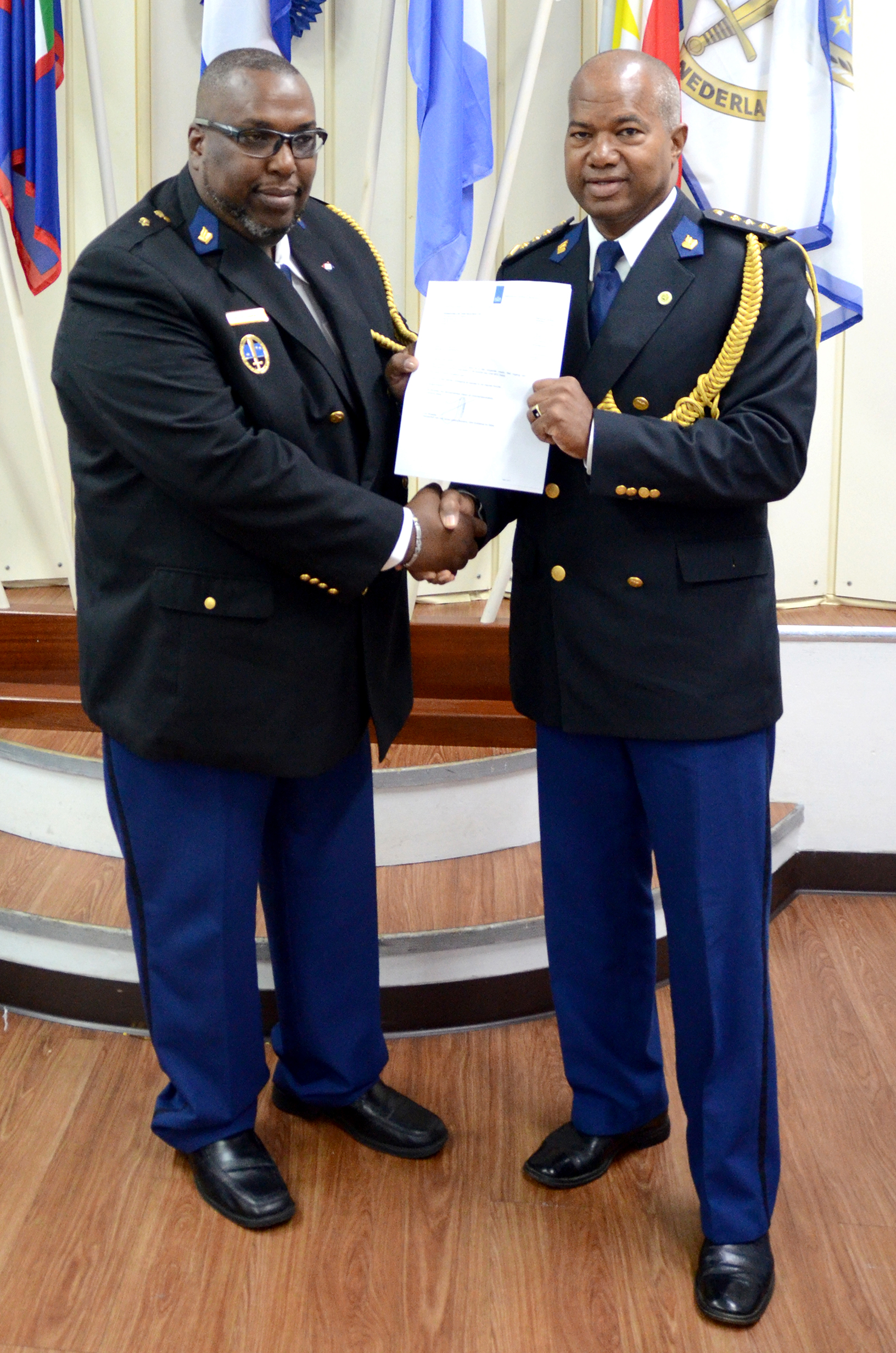 Geerdink too noted that cooperation is essential. “On a small island like Saba you have to make it work together.” He mentioned a number of large incidents that have taken place in recent times, including several fires, and expressed great appreciation for the Saba team. Because of its small size, the team has to perform more tasks than on the larger islands and in the Netherlands where backup, specialist assistance is readily available. “Together with your team, you have the capacity to do your job well,” Geerdink said to Baker. “We have a well-educated and trained team on Saba.”