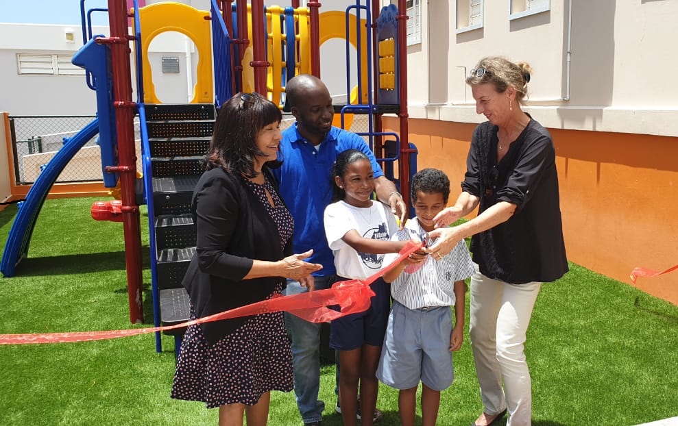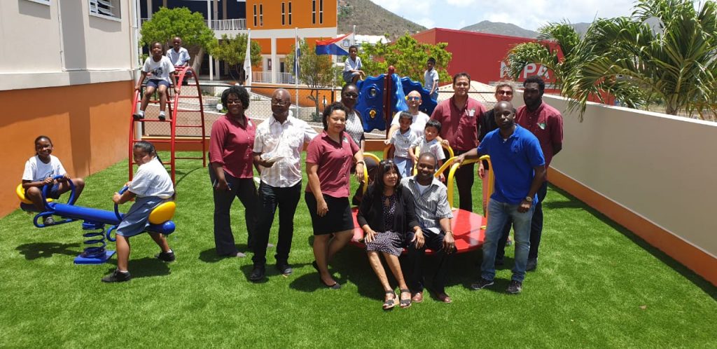 CAY HILL, Sint Maarten – The official opening of the Asha Stevens Hillside Christian School’s new playground area took place on Tuesday, May 14, 2019. The opening was performed by Mrs. Asha Stevens, the Founder of the school together with board and management. Mrs. Jose Sommers and Mr. Leonaris Rey representing the Board of Foresee (4C) Foundation and other stakeholders .