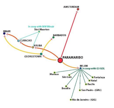 Esta asociación permite a Surinam Airways expandir su red y brindar a sus clientes más opciones de viaje al Caribe, las Antillas Holandesas, América del Sur y Europa.