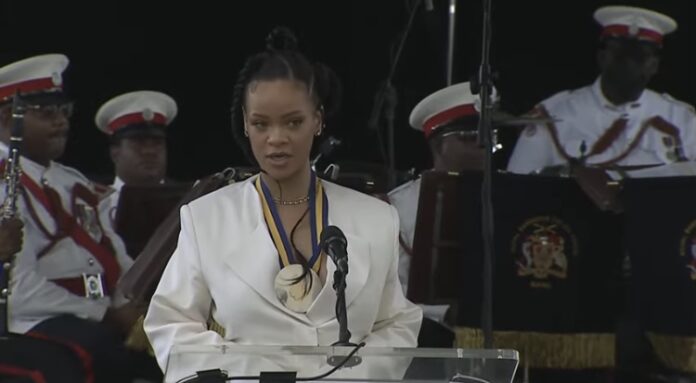 Rihanna was honored by Prime Minister Mia Mottley at an event marking Barbados new status as the world’s newest republic and as it swore in its new President, Dame Sandra Mason.