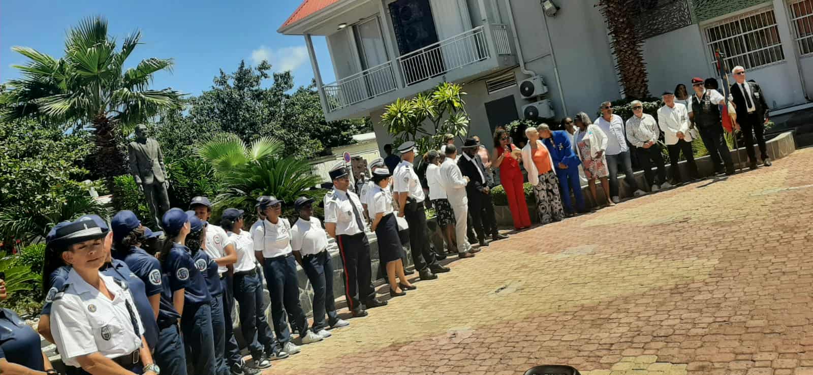 Posteriormente, se celebró una ceremonia formal en los jardines de la Collectivité, donde se depositaron coronas de flores en honor a los soldados caídos. Durante el acto, el Estado reconoció a tres personas por su valentía y coraje.