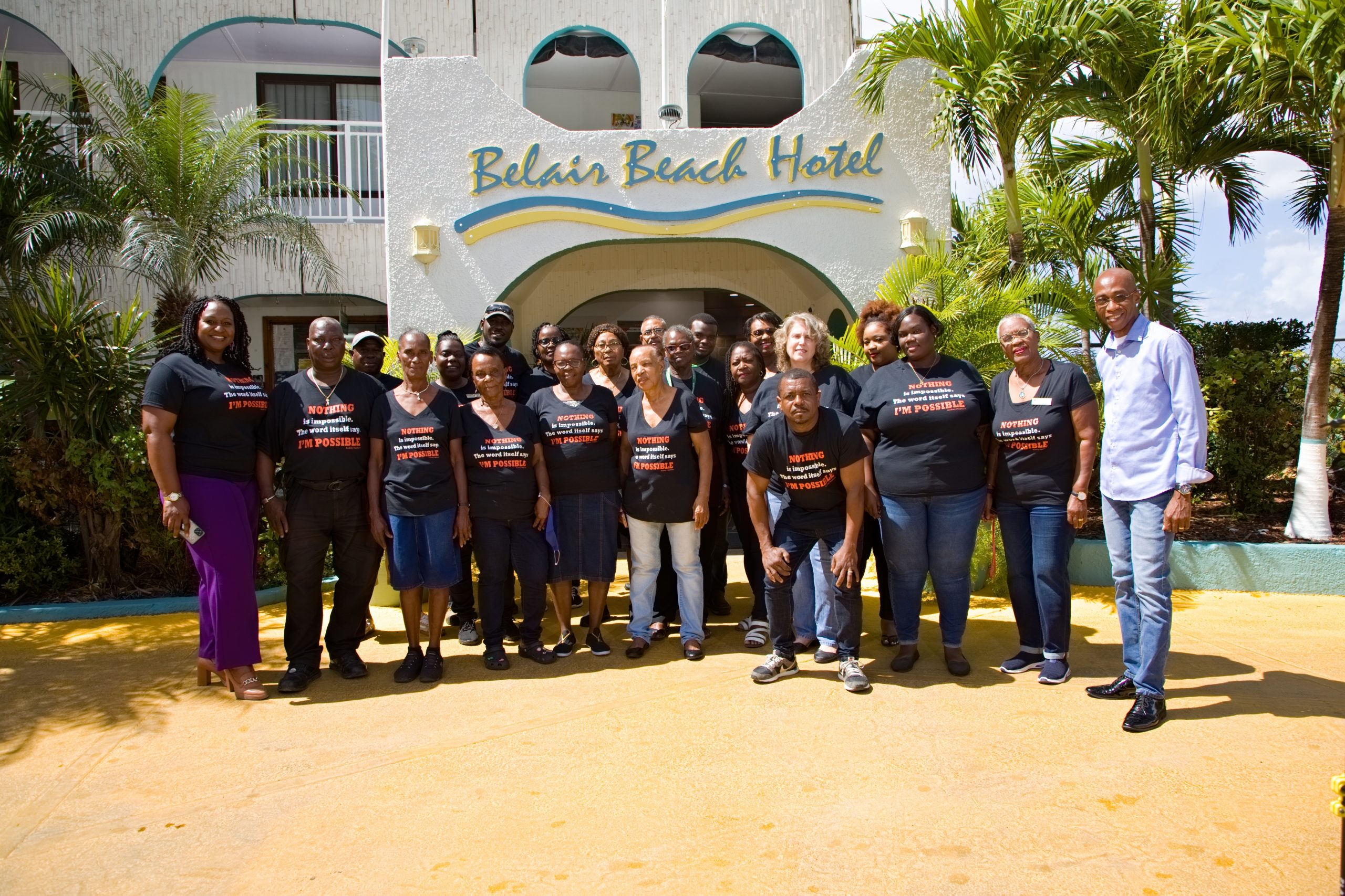 Roy Cotton, Jr. declaró: “Sentí alegría en mi corazón y agradecí a Dios ser testigo de un sueño hecho realidad al ver al personal de Belair Beach Hotel vistiendo sus camisetas I ‘nSPIRE Belair Beach Hotel.