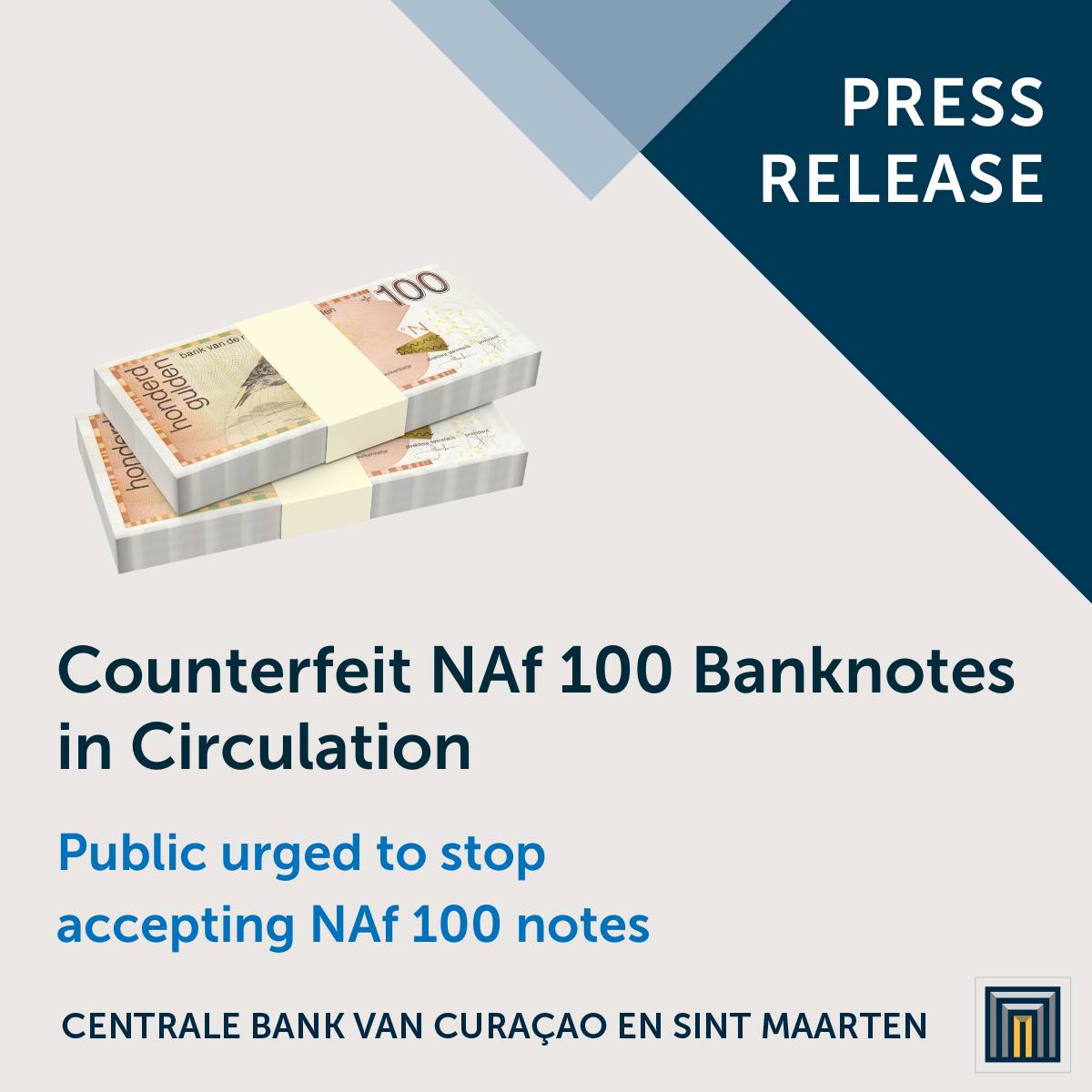 WILLEMSTAD/PHILIPSBURG — El Banco Central de Curaçao en Sint Maarten (CBCS) advierte al público sobre un aumento significativo de billetes falsos de 100 NAf que circulan actualmente en Curaçao. Como medida de precaución, el CBCS recomienda al público dejar de aceptar billetes de 100 NAf para pagos de inmediato y durante el resto del período de cocirculación (hasta el 1ro de julio de 2025) para evitar una mayor proliferación de billetes falsos.