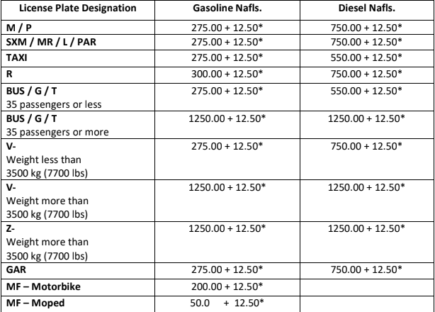 Las tarifas del Impuesto sobre Vehículos para 2024 en florines antillanos son: