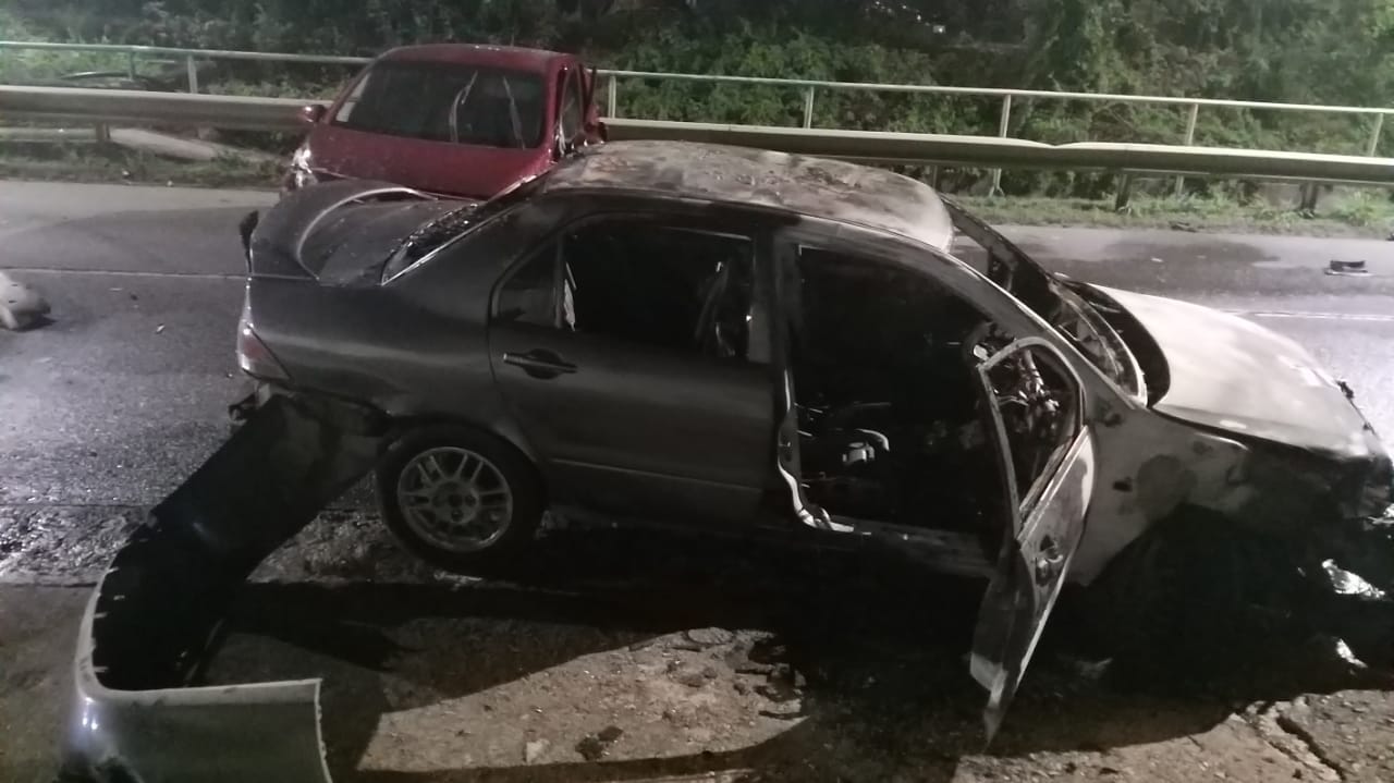 The driver of the Hyundai I-10 was overtaking at the same time, and collided with the back part of the Lancer who was making the turn. The impact caused the Lancer to burst into flames. The driver of the Mitsubishi lance suffered minor injuries and was treated at the scene by the paramedics.