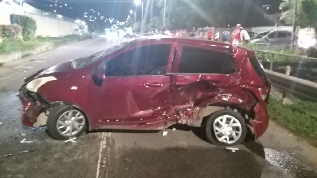 According to the information gathered , both the Mitsubishi Lancer and the Hyundai I-10 were travelling in the same direction, on L.B Scott road heading in the direction of the Emilio Wilson Park, when the driver of the Lancer made a left turn to go onto the Flamboyant road.