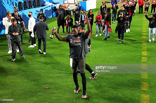 News Americas, TAMPA, FL, Mon. Feb. 8, 2021: Caribbean American footballer, Jason Pierre-Paul, popped champagne and celebrated with his family last night, as he overcame significant odds to win another Super Bowl ring Sunday night.