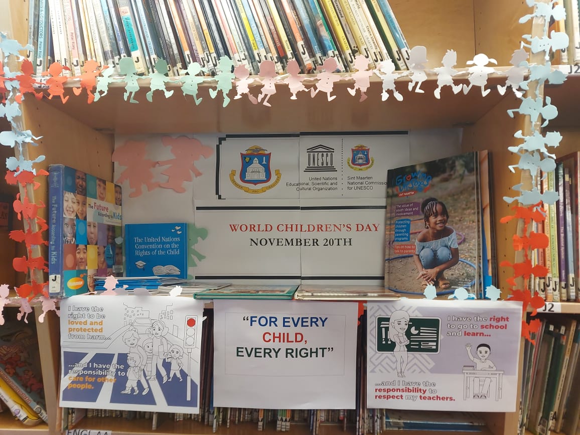 PHILIPSBURG, Sint Maarten – Para celebrar el Día Mundial del Niño, la Comisión Nacional de Sint Maarten para la UNESCO se asoció con la Biblioteca de St. Maarten para crear una exposición sobre los derechos del niño en su sede de Philipsburg y la biblioteca satélite de Asha Steven Primary School.