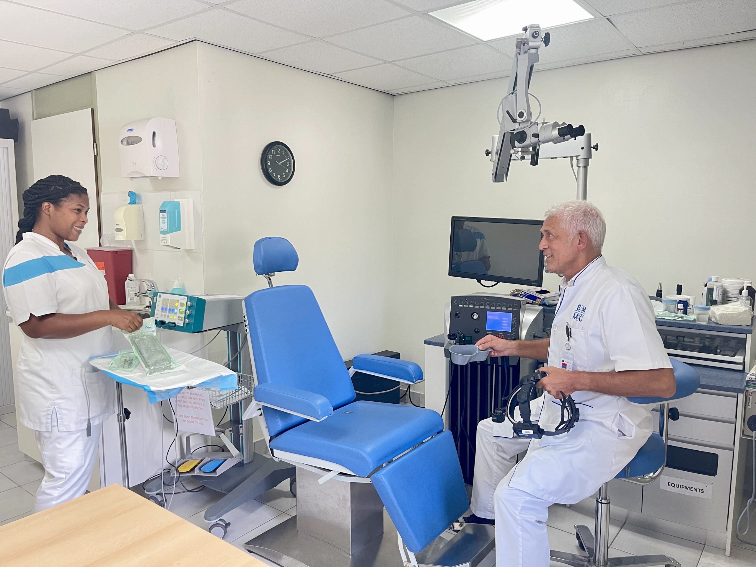 Además de ampliar y mejorar el nivel de atención de otorrinolaringología en St. Maarten, el Dr. Wong Chung, especialista en otorrinolaringología, y sus colegas también han estado explorando nuevas opciones para hacer que la atención sea más accesible para los pacientes que enfrentan la barrera del idioma. El Dr. Wong Chung, como muchos otros especialistas y enfermeras de SMMC, utiliza Google Translate para comunicarse con sus hablantes de español, criollo haitiano y chino.