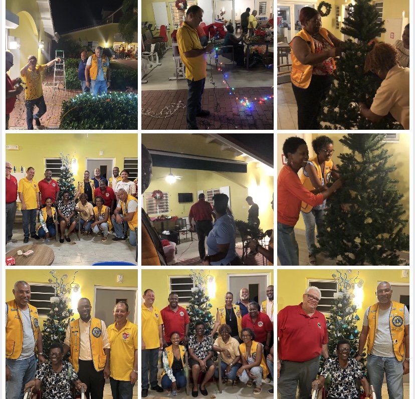 El presidente del Club de Leones de Sint Maarten, el León John Schaminee, comentó: “Es una alegría y un placer para nuestros socios Leones pasar tiempo con nuestros adultos mayores creando el ambiente navideño. Siempre estamos listos para servirles, ya que son una parte muy importante y valiosa de nuestra comunidad. Podemos ver por las grandes sonrisas en sus rostros que también la están pasando muy bien”.