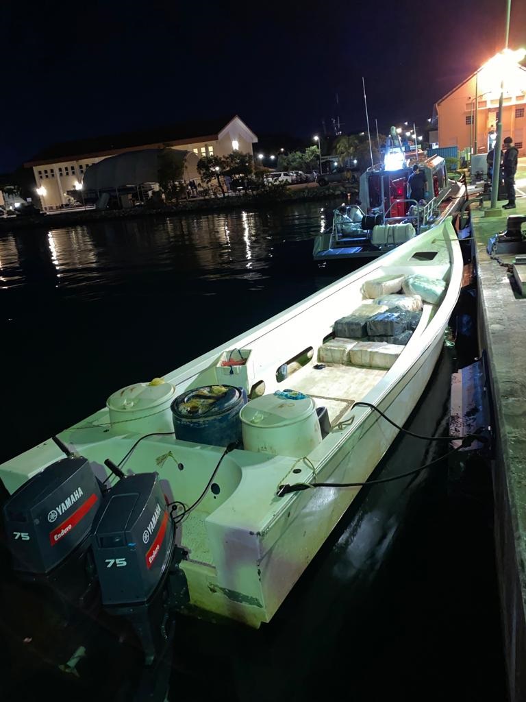 Once on site, the Coast Guard patrol boat crew spotted a vessel with four people on board. Further investigation by the coast guards revealed that the four men were carrying drug packages. The vessel and the Venezuelan men were taken to the coastguard jetty where they were handed over to the Curaçao Police Force. The suspected boat’s cargo of a total of 440 kilograms of drugs, including approximately 192 kilograms of cocaine and 248 kilograms of marijuana, has since been destroyed. The Curaçao Police Force will investigate the matter further.