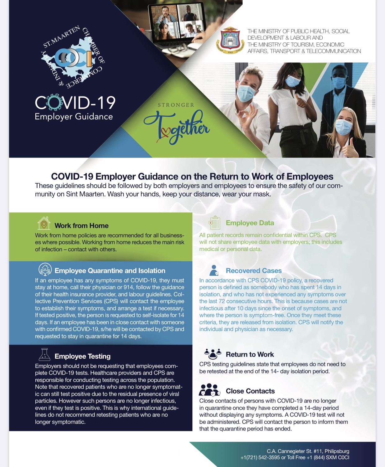 The Sint Maarten Chamber of Commerce and Industry is asking business owners/ operators who would like this information to be displayed in your place of business to contact COCI to reserve these flyers and posters.