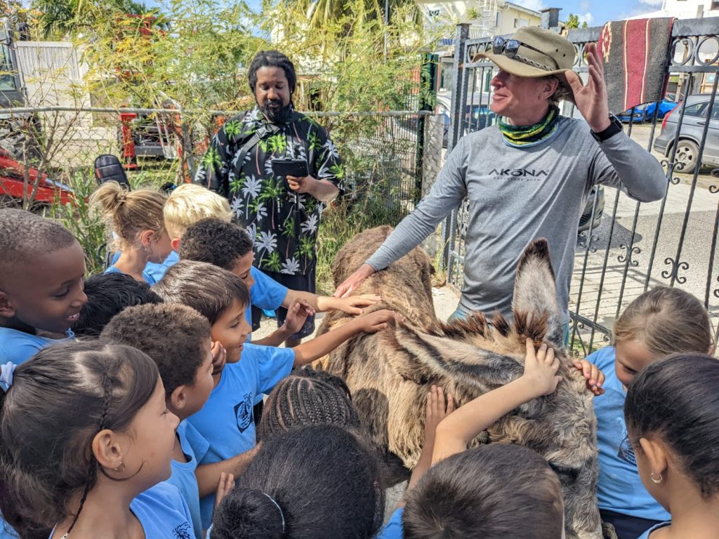 El cineasta local Valies dijo que está feliz de ser parte de este proyecto que fomentará la voluntad de crear conexiones a través del arte. La parte del inicio del recorrido del lunes llevó a Valies y Ridder desde la frontera Point, sobre el puente Causeway y hasta el área de Simpson Bay. Uno de los momentos más destacados de la caminata fue la parada en Sister Regina School para reunirse con los estudiantes. Un placer para muchos de los estudiantes fue la oportunidad de acariciar a Marie-Louise, quien disfrutó de la atención. Existe una política de cuidado de animales para la seguridad de Marie-Louise. Para el segundo día, el equipo se aventurará en el área de Cole Bay, donde continuarán reuniéndose con personas culturalmente relevantes y el público en general.