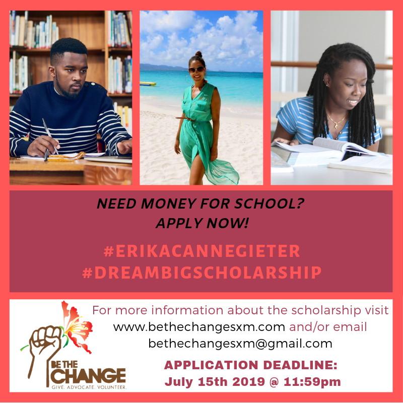 PHILIPSBURG, Sint Maarten – Be The Change Foundation would like to remind all those who wish to apply for the Erika Cannegieter Dream Big Scholarship awards that they must do so by July 15th.