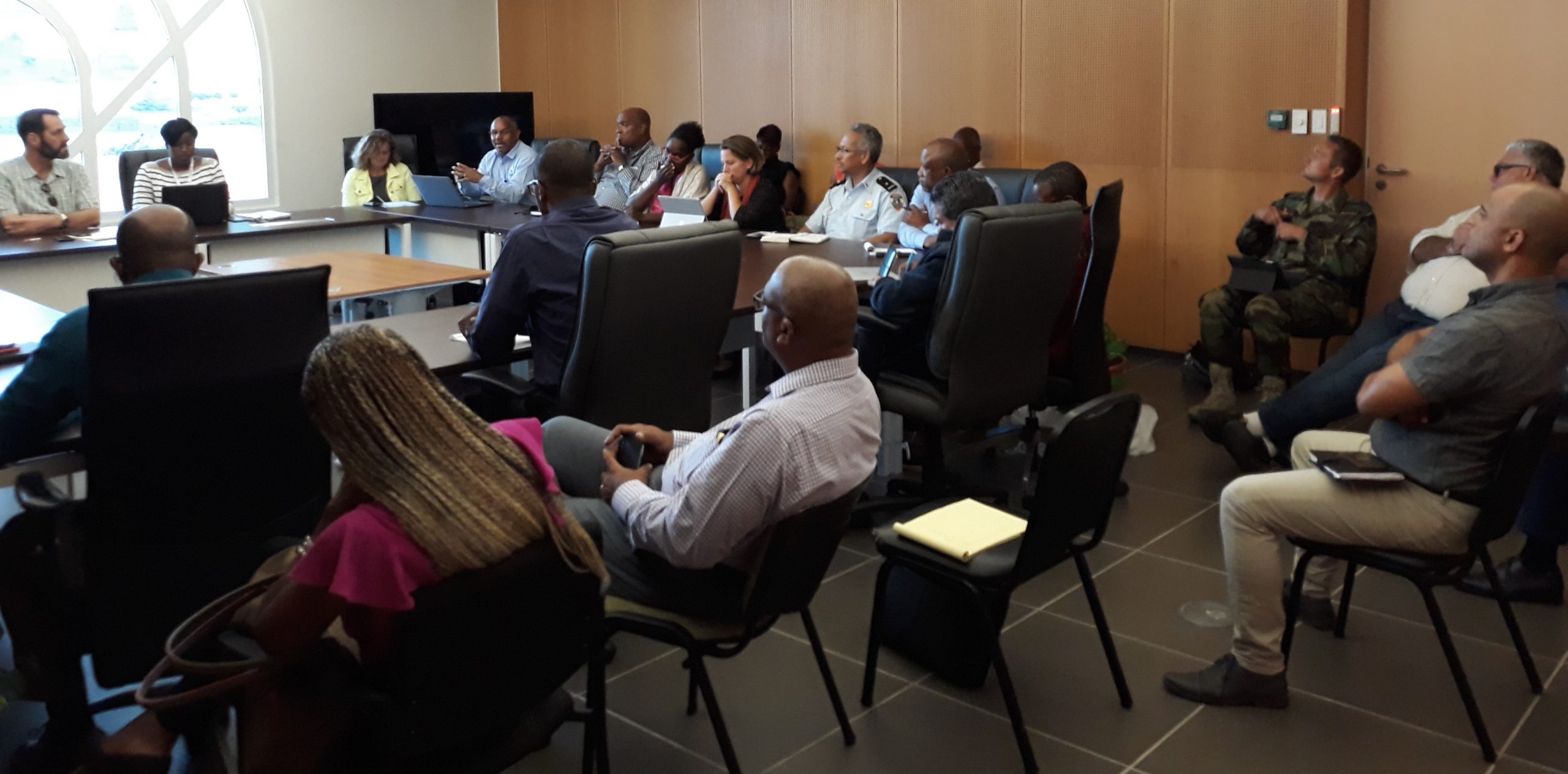 PHOTO CUTLINE: EOC in session back in September discussing the potential threat of Tropical Storm Jerry to the nation.