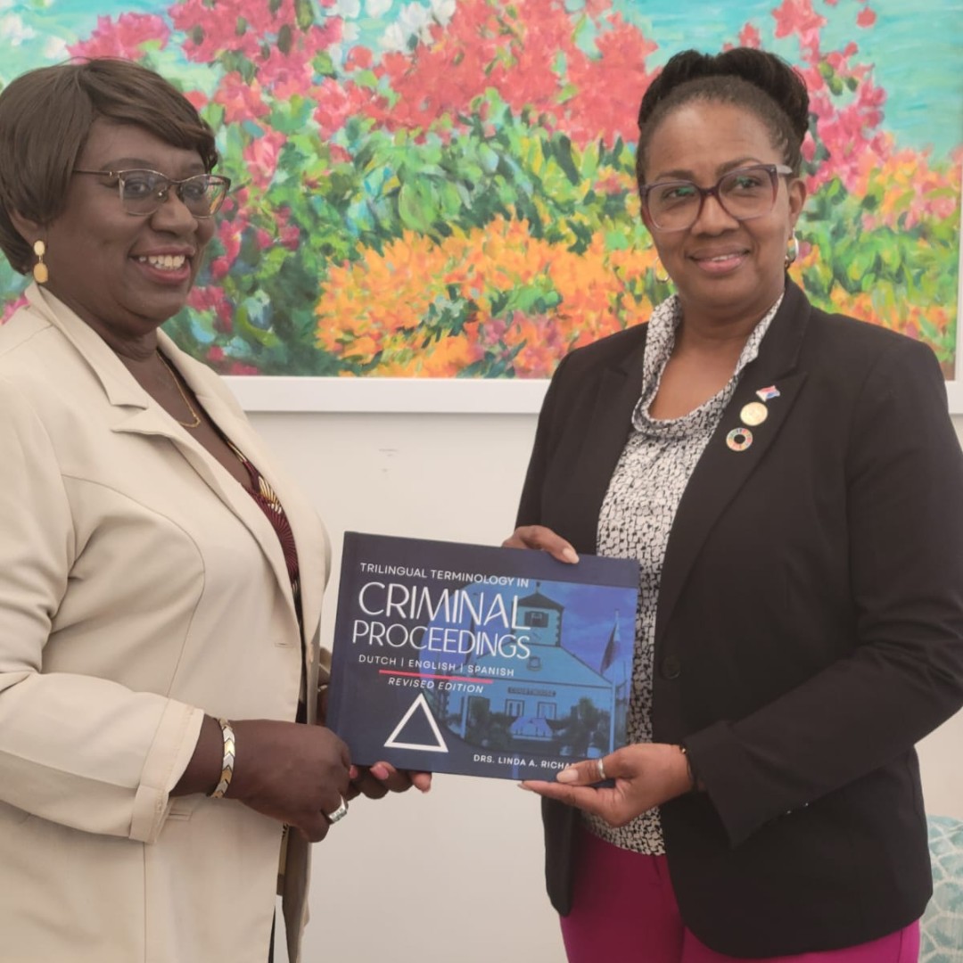 PHILIPSBURG, Sint Maarten – El lunes, la Dra. Linda Richardson reveló su última contribución literaria, “Terminología trilingüe en procedimientos penales”, a la Primera Ministra interina Silveria Jacobs. Este trabajo fundamental, elaborado a lo largo de décadas de experiencia, constituye una guía para quienes navegan por la intrincada red de procedimientos legales, garantizando un estándar de traducción e interpretación que defienda la justicia.