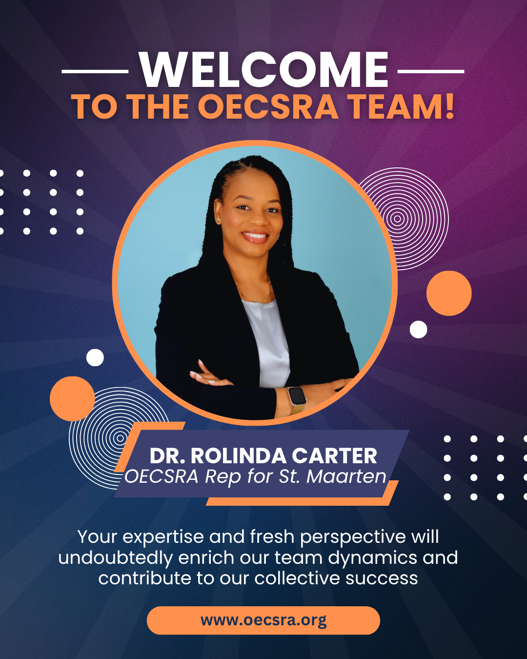 Como Representante de la OECSRA para St. Maarten, la Dra. Carter desempeñará un papel fundamental en el establecimiento de programas de robótica, la coordinación de iniciativas de capacitación y el desarrollo de alianzas de colaboración con escuelas, agencias gubernamentales y otras partes interesadas. Su liderazgo será clave para empoderar a las mentes jóvenes y preparar a la próxima generación para carreras en tecnologías emergentes.