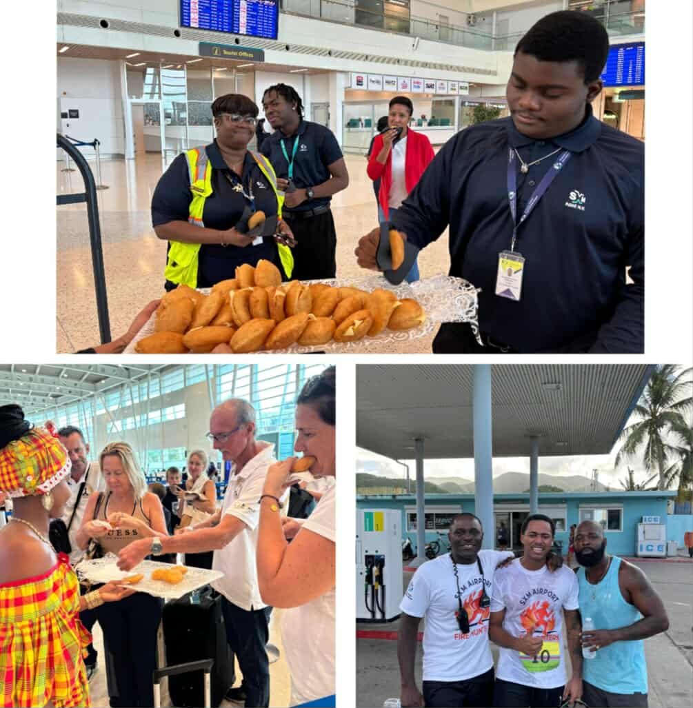 Tras la carrera matutina, las celebraciones continuaron en la terminal del aeropuerto, donde tanto los pasajeros como los empleados del PJIAE disfrutaron de Johnny Cakes recién hechos y la animada música de tambores metálicos. Mujeres vestidas con trajes tradicionales dieron una cálida bienvenida a los viajeros, creando una vibrante y auténtica muestra de la cultura y la hospitalidad de St. Maarten.