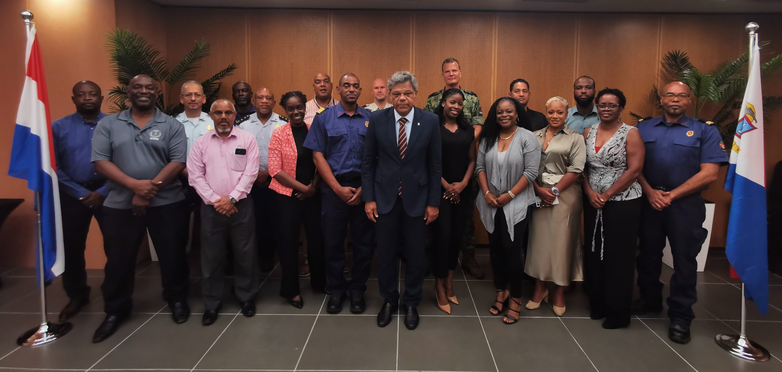 Los 10 ESF son: ESF-1 NV GEBE (Agua y Energía), ESF-2 Bureau Telecommunication and Post (BTP), ESF-3 Ministry of Public Housing, Spatial Planning, Environment and Infrastructure (Obras Públicas, Transporte y Logística), ESF-4 Fire Department, ESF-5 Police, ESF-6 Ministry of Public Health, Social Development and Labour, ESF-7 Department of Social Development (Evacuación, Refugios, Socorro y Atención a las Masas), ESF-8 Department of Communication, ESF-9 Government Affairs, y ESF-10 Ministry of Tourism, Economic Affairs, Telecommunication and Transportation (Aeropuerto, Puerto y Hoteles).