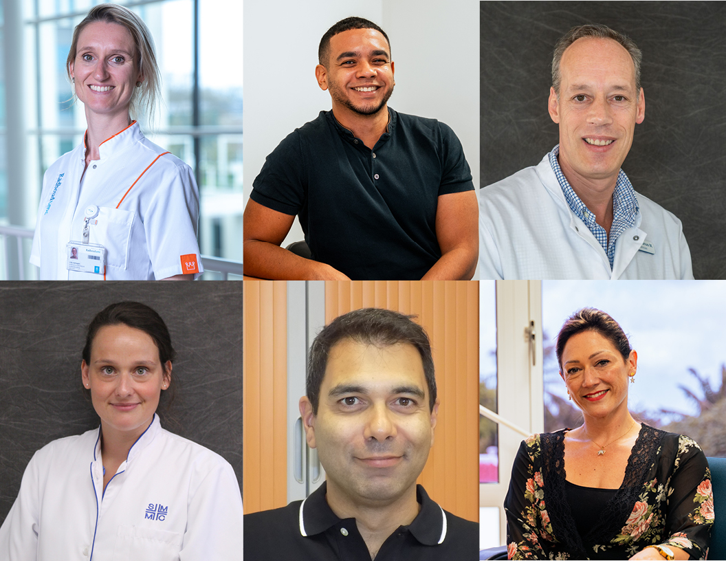 FOTO: El equipo CARE-SAFE compuesto por (arriba) Dra. Lilly Verhagen, Dr. Angelino Tromp, Dr. Martijn Tilanus, (abajo) Dra. Sonja van Roeden, Dr. Radjinkoemar Steingrover y Drs. Flor Koene.