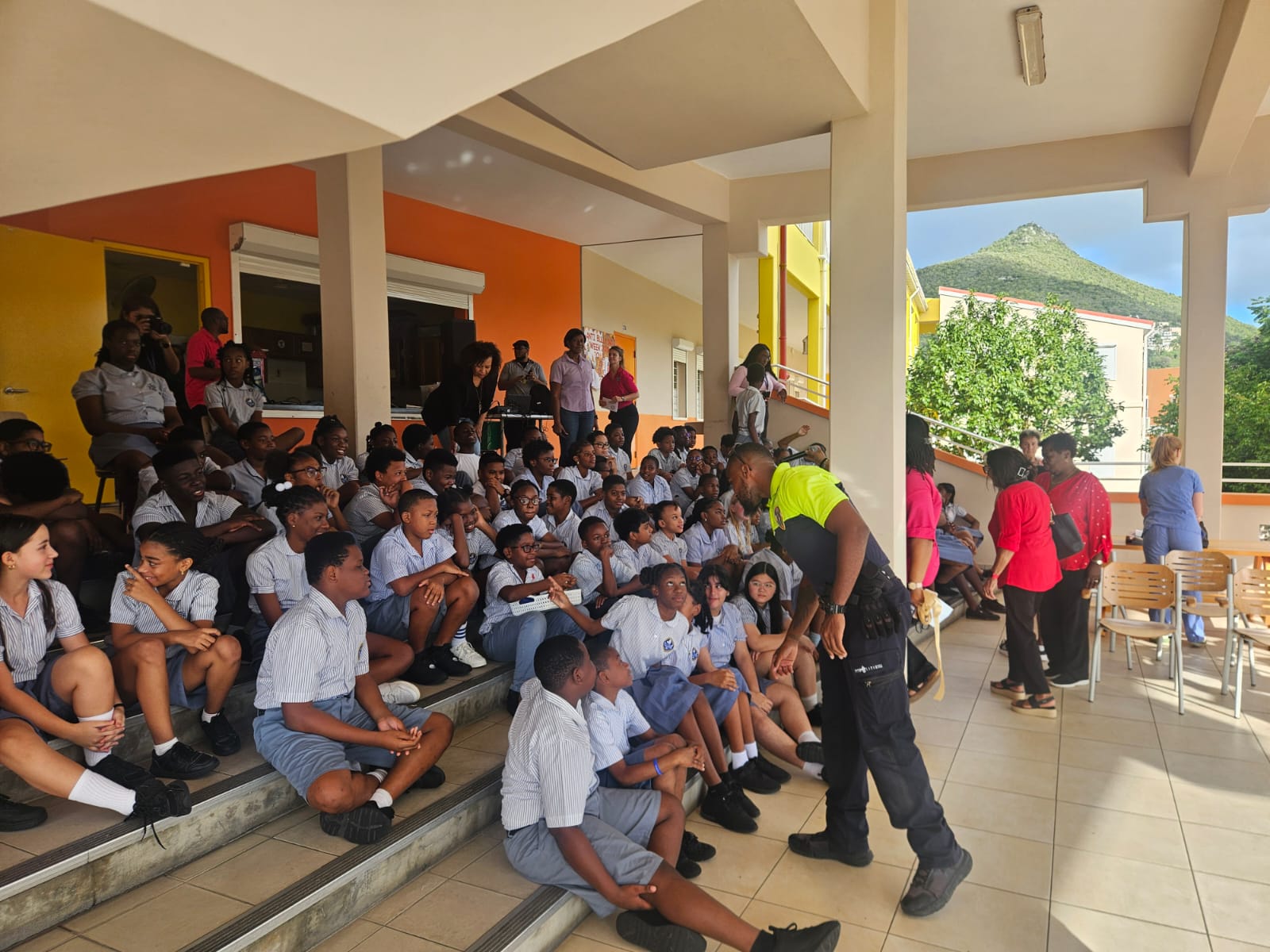 PHILIPSBURG, St. Maarten – La Fuerza de Policía de Sint Maarten (KPSM) participó con varios agentes en la Aldea de los Idiomas 2026 el viernes 23 de enero de 2026, celebrada en Asha Stevens Hillside Christian School. Gracias a esta participación, el KPSM contribuyó al fortalecimiento de las habilidades lingüísticas y el desarrollo comunicativo de los estudiantes.