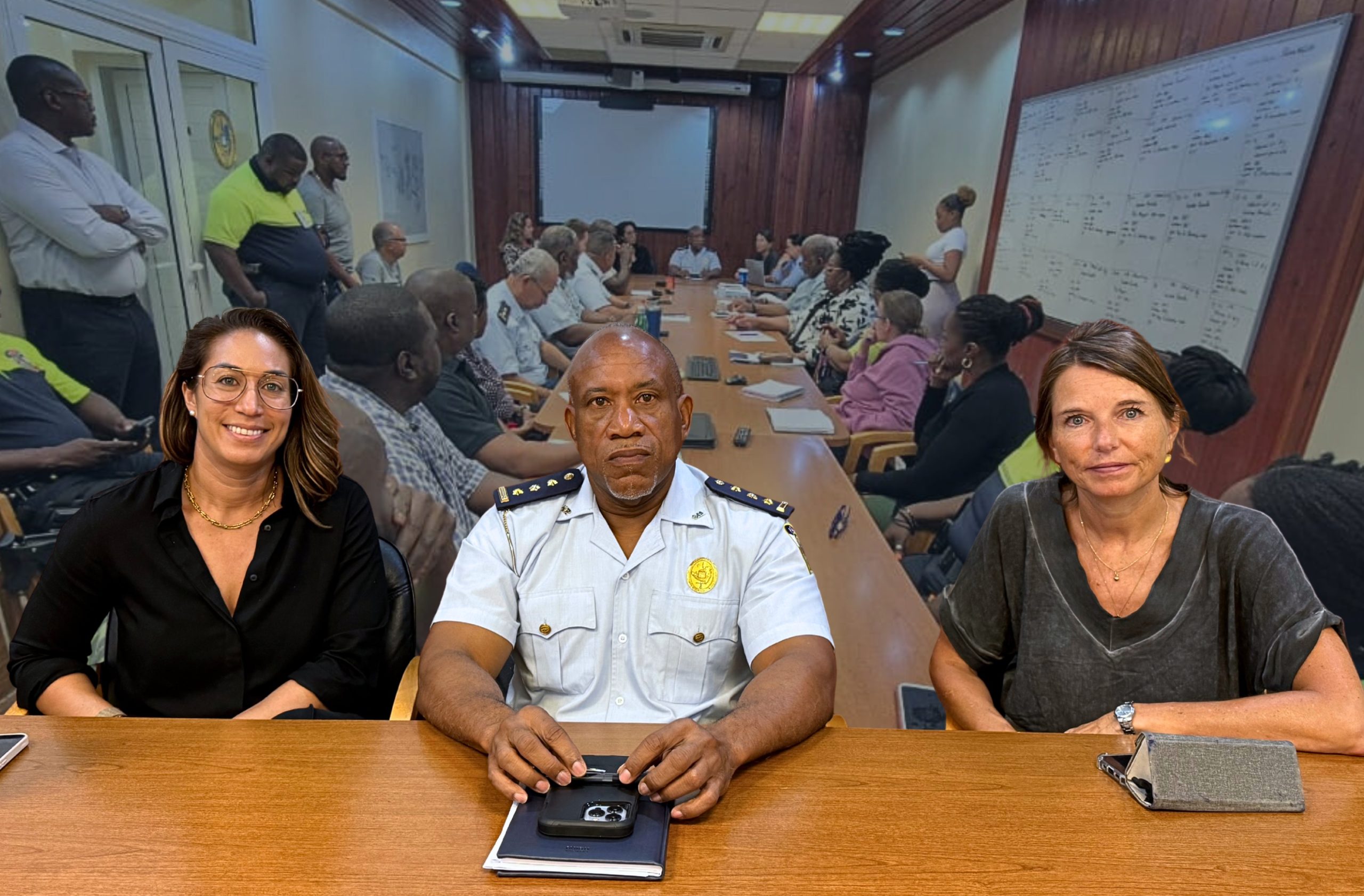 Philipsburg, Sint Maarten – La mañana del lunes 8 de diciembre de 2025, la Honorable Ministra de Justicia, Nathalie Tackling, junto con la Fiscal Jefe M. Ridderbeks y el Jefe de Policía Carl John, sostuvieron una reunión urgente en la Estación de Policía del KPSM durante una operación Policial activa y coordinada.