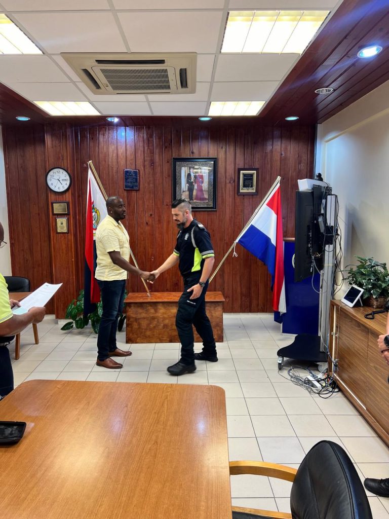 El Ministro de Justicia Lyndon Lewis juramentó a cinco oficiales de Aruba para ayudar a St. Maarten