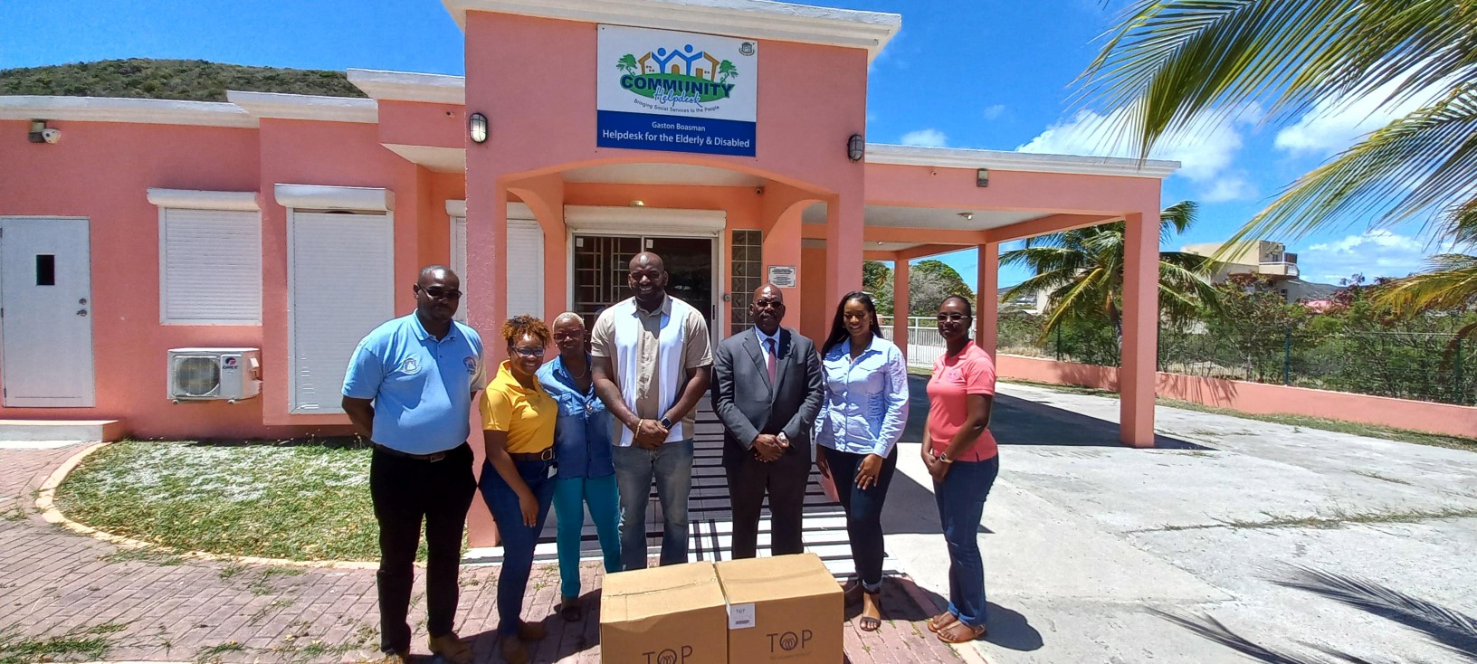 Hope Estate, Sint Maarten – El viernes 14 de abril de 2023, el Ministro Omar Ottley acompañado por el Ministro Rudolph Samuel, la Coordinadora de Teen Times, la Sra. Rochelayne Richardson-Romey, el personal de Community Development Family & Humanitarian Affairs, la Sra. Elba Hanson-Flanders y la Sra. Elencia M. Baptiste-Boasman, por la entrega de productos de Higiene Femenina a dos Consejos Escolares.