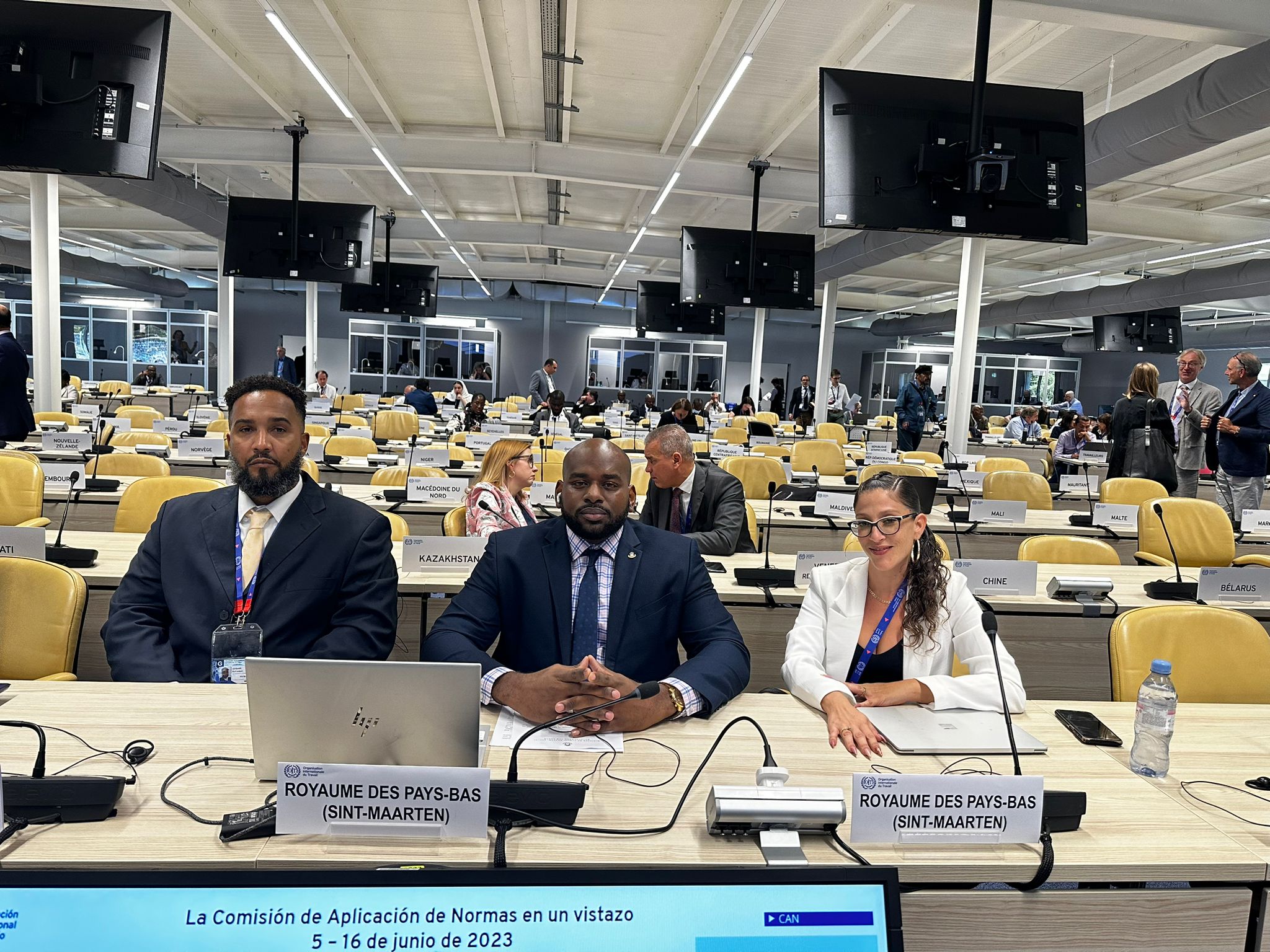 La delegación incluyó a la secretaria general Joy Arnell, la jefa de Departamento de Trabajo Linda Froston, los miembros del gabinete Alissa Rios y Johnnie Richardson, así como representantes de la organización de empleadores, la Sra. Edna Evans, y la organización de empleados, el Sr. Stuart Johnson. Durante la conferencia, St. Maarten fue convocada frente al Comité de Aplicación de Normas (CAS) para defender su caso contra las acusaciones relacionadas con el Convenio 87. El Ministro Ottley presentó un argumento convincente en nombre del país el lunes 12 de junio, 2023.