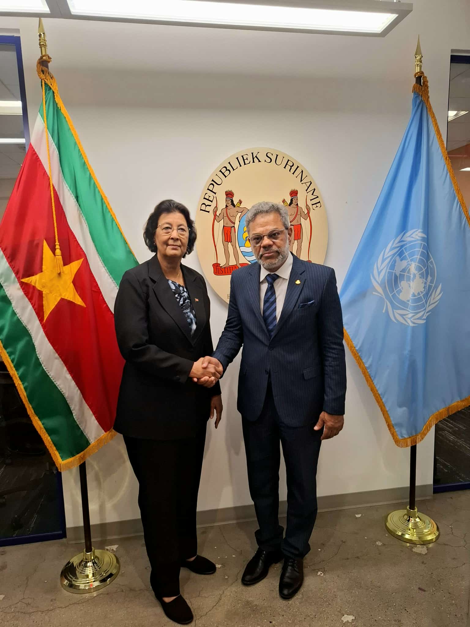 Nueva York, EE. UU. – Hoy, en el marco de la Asamblea General de las Naciones Unidas (AGNU), el Honorable Primer Ministro de Sint Maarten, Dr. Luc Mercelina, inició y dirigió una reunión bilateral de alto nivel con Su Excelencia Jennifer Geerlings-Simons, Presidenta de la República de Surinam, la primera mujer en ocupar la presidencia de Surinam.