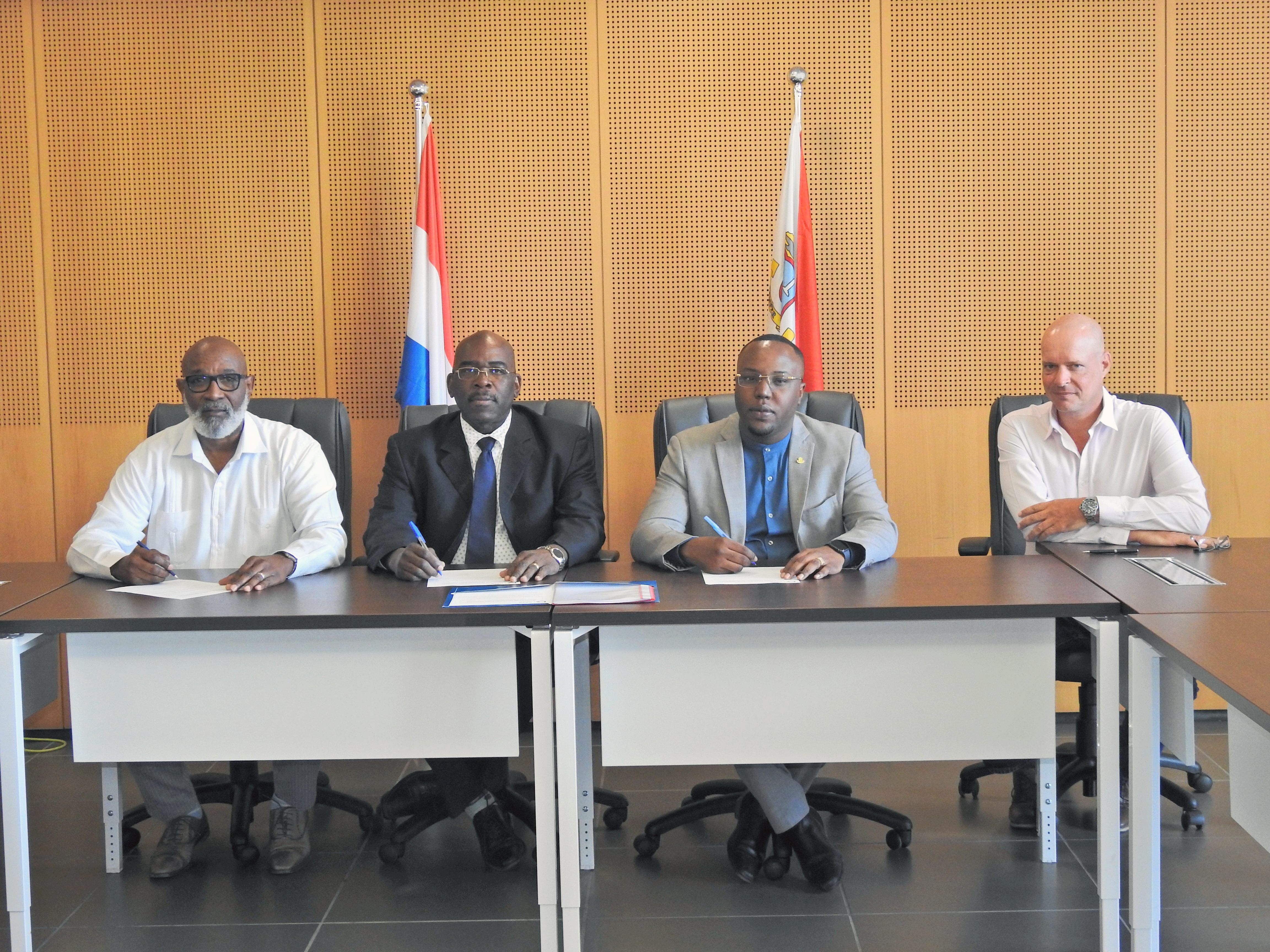 Después de un exitoso período de prueba de 6 meses, el sistema de tratamiento de aguas residuales completamente reparado se entregó oficialmente al Gobierno de Sint Maarten y a la gerencia de Leonald Conner School. El Ministro de Educación, Cultura, Juventud y Deporte (ECYS), Rodolphe Samuel, firmó los documentos de entrega en una pequeña ceremonia el 6 de marzo. “Gracias a todos los involucrados que contribuyeron a su realización. Es importante que cada escuela tenga una solución adecuada para las aguas residuales. Con la finalización de este proyecto, es un paso en la dirección correcta para que las escuelas tengan su propio sistema de tratamiento de las aguas residuales.” dijo el Ministro Samuel, elogiando el trabajo de todos los actores involucrados en este logro.