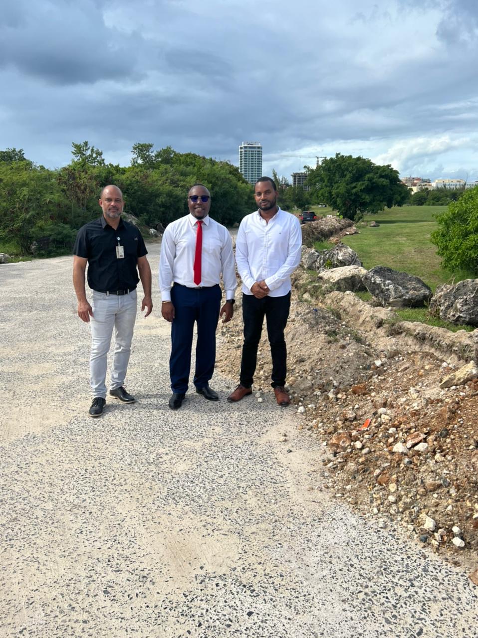 PHOTO CUTLINE: Minister of VROMI Hon. Egbert Doran (center) at the Mullet Bay location during a recent site visit where the civil works are being carried out.