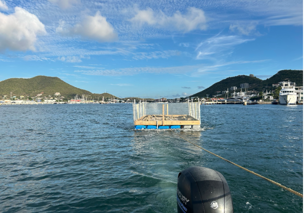 Mientras EPIC trabaja para restaurar el hábitat de las aves marinas en la isla, se necesitaba una solución a corto plazo para mantener a los charranes alejados del aeropuerto. A finales de abril, EPIC inauguró una plataforma flotante para la anidación temporal. Ubicada en Simpson Bay Lagoon, justo al lado de la pista, esperamos que las aves utilicen esta zona en lugar de la pista. La plataforma consiste en un muelle flotante con una estructura de madera en la parte superior, grava y dispositivos de atracción.