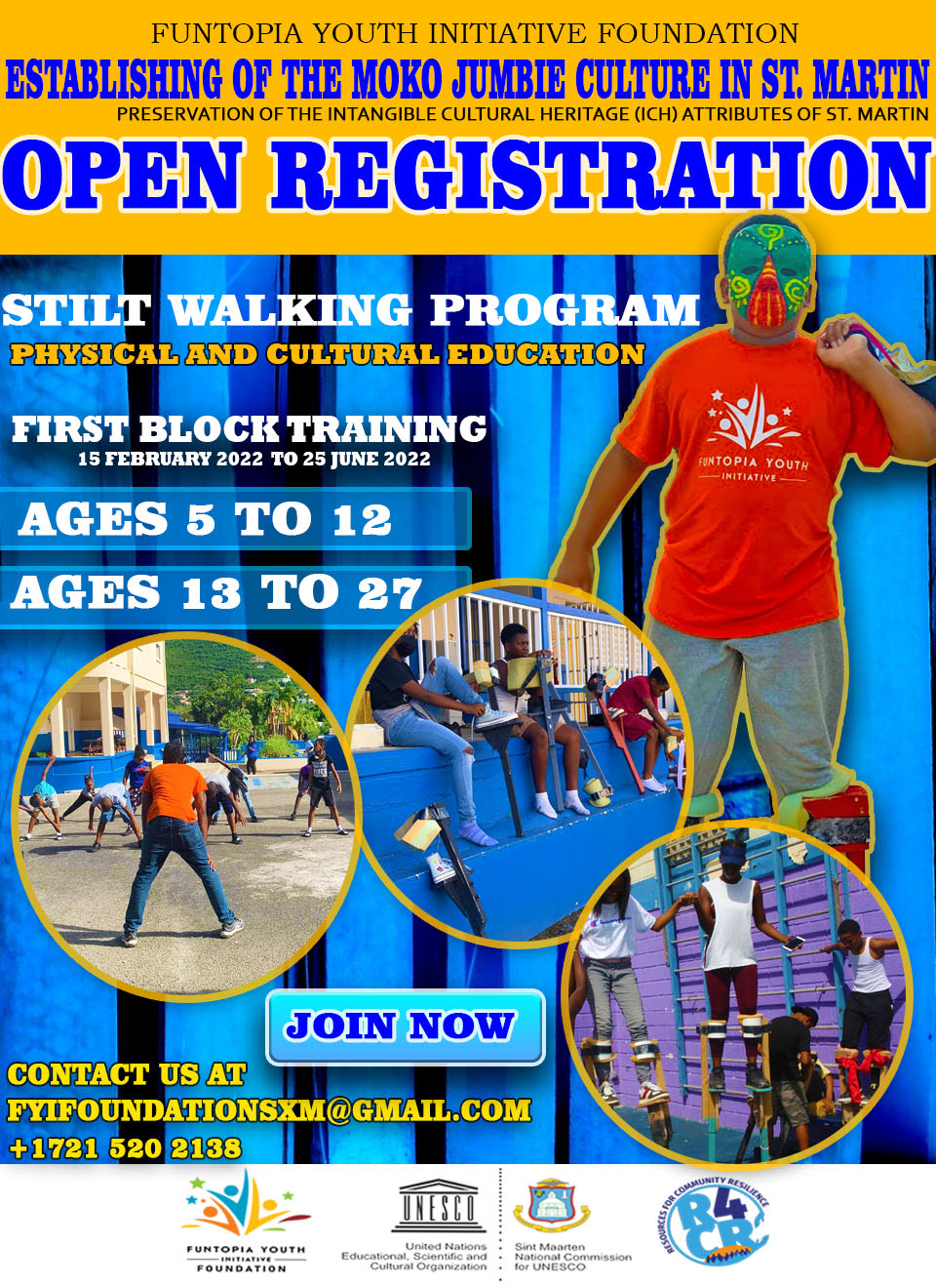 La fundación ha desarrollado un proyecto integral que se enfoca en Establecer una cultura Moko Jumbie en St. Martin donde los participantes pueden aprender sobre la cultura afrocaribeña, el arte de andar en zancos y participar en una serie de actividades sociales.
