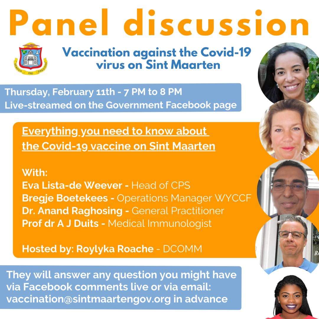 Everyone is invited to post the questions that they might have live via Facebook comments or in advance via vaccination@sintmaartengov.org.