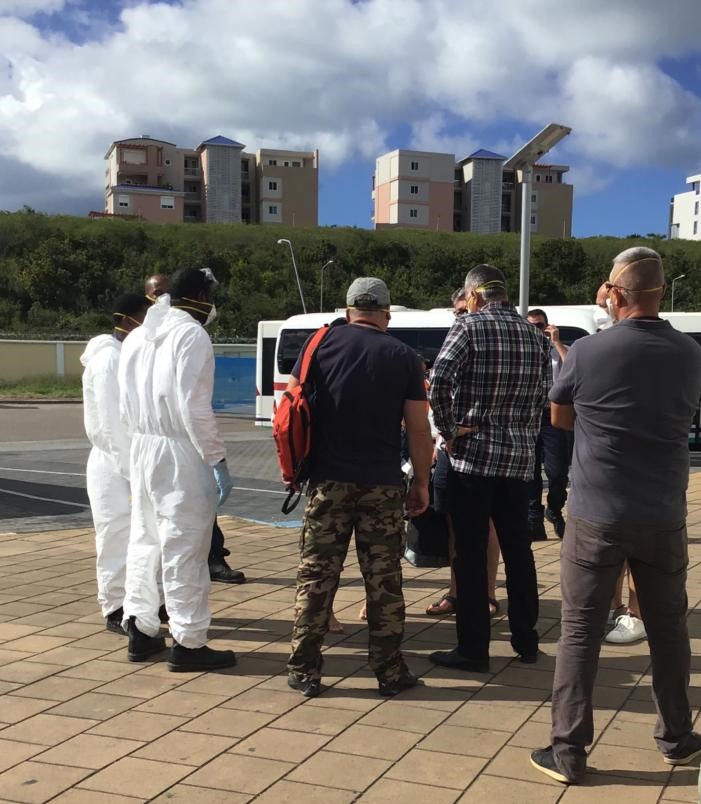SXM Airport initiated its protocol in dealing with communicable diseases, as the Rescue and Firefighting EMT team assisted the French Police Authorities with the apprehending of the couple and the prompt transporting process to the isolation room. Upon arrival to the remote area, the Rescue and Firefighting EMT team conducted a standard interview with the patients at the isolation room and checked their vital signs. All the vital signs appeared normal, as there were no signs of coughing, sneezing or fever. At 4:50pm the couple were transported to the Louie Constant Fleming Hospital, in Concordia, St. Martin.