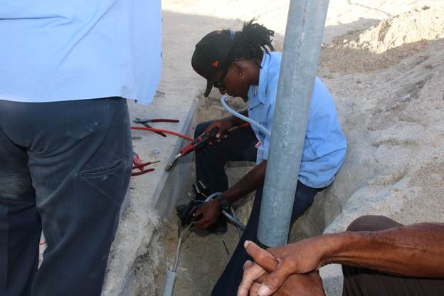 Minister of VROMI, Christopher Wever, Patrick Drijvers, GEBE’s Assistant Distribution Manager, and GEBE CEO Kenrick Chittick were on hand to oversee the installation of the first 10 lights.