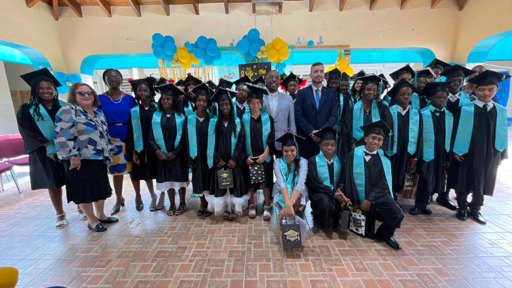 Presente en la ceremonia estuvo el Honorable Ministro de VROMI Egbert Doran, Jefe de Gabinete del Ministro de ECYS Glenderlin Holiday, exalumno del Capitán Piloto de MGDW Aaron Leerdam, y otros invitados distinguidos junto con orgullosos padres/tutores.