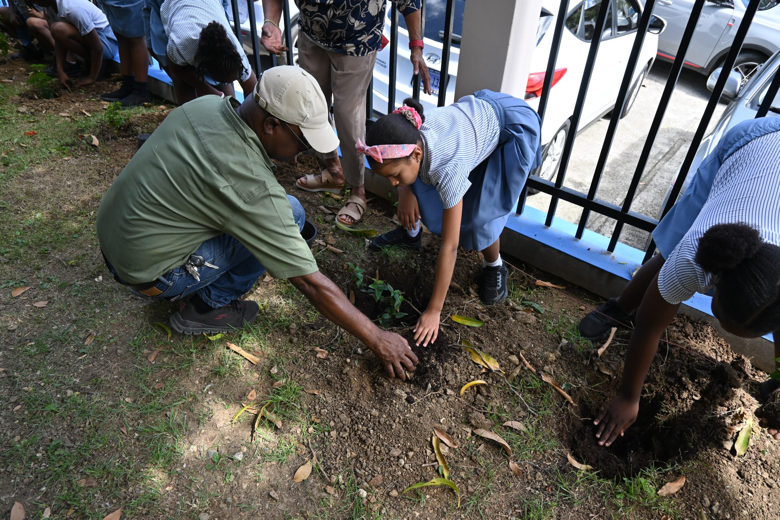 La Sra. Stevens-Mohabier habló en ambos eventos y se refirió a la importancia de “echar raíces” y a la importancia de aprender a nutrir la vida a una edad temprana. El personal de Nature Foundation también hizo comentarios de apertura en los que habló sobre algunos de los servicios ecosistémicos cruciales que brindan los árboles. Luego, los estudiantes de los Grupos 2, 3, 4, 5 y 6 colocaron las plántulas en el suelo, las cubrieron con tierra y las regaron.