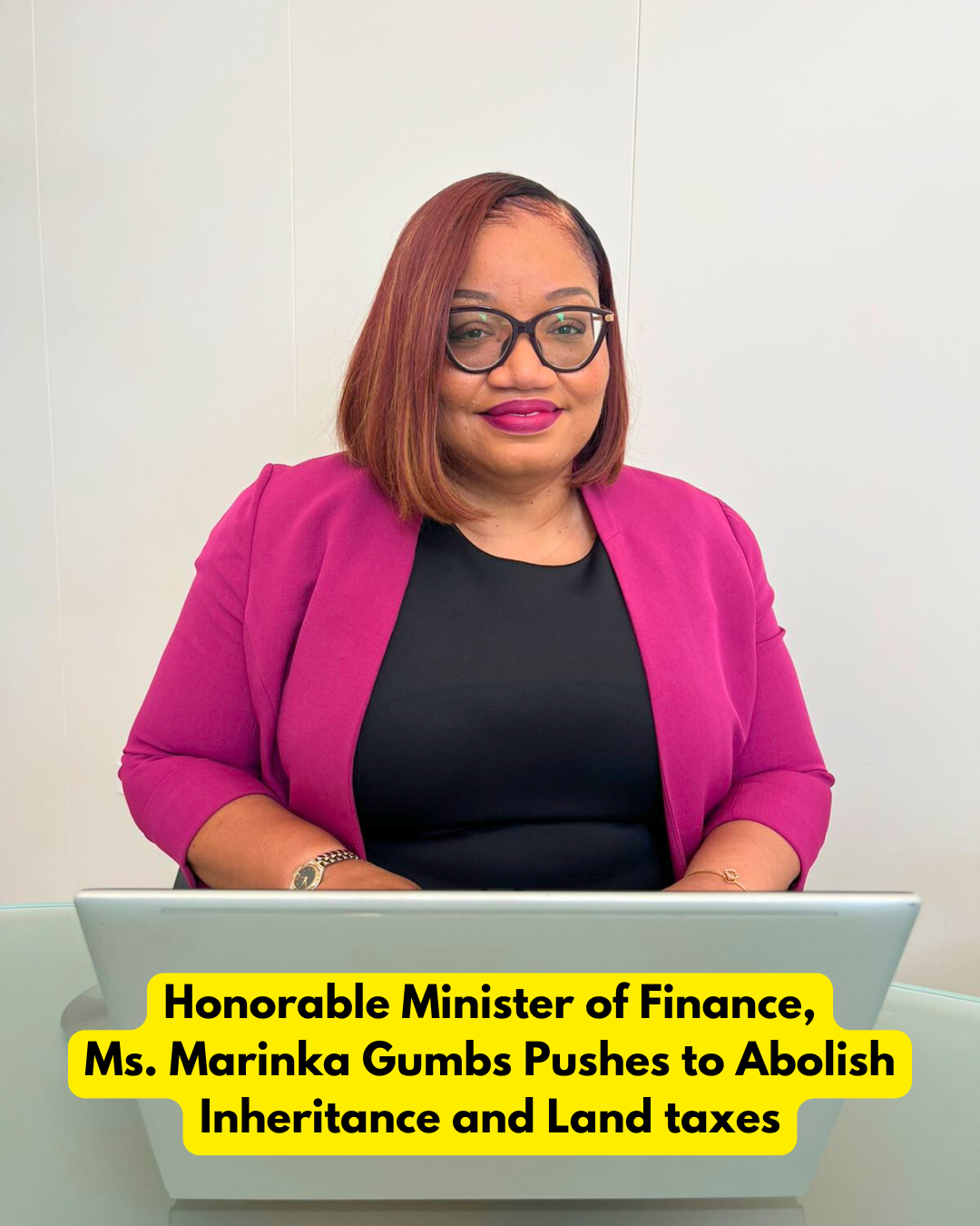 Honorable Ministra de Finanzas, Sra. Marinka Gumbs, impulsa la abolición de los impuestos sobre sucesiones y tierras