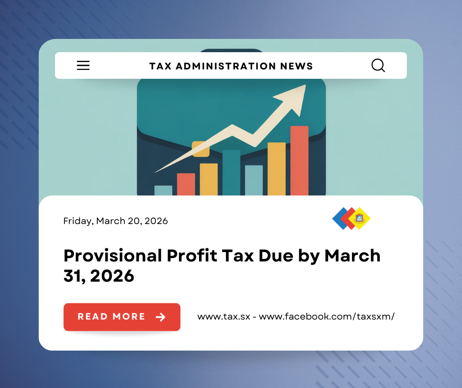 Philipsburg, St. Maarten – La Inspección de Impuestos recuerda a las empresas que la fecha límite para presentar y pagar el Formulario de Impuesto Provisional sobre Ganancias de 2025 es el martes 31 de marzo de 2026.