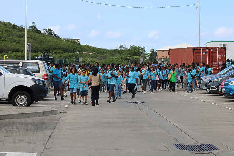 Los estudiantes se reúnen frente a la Cité Scolaire en La Savane