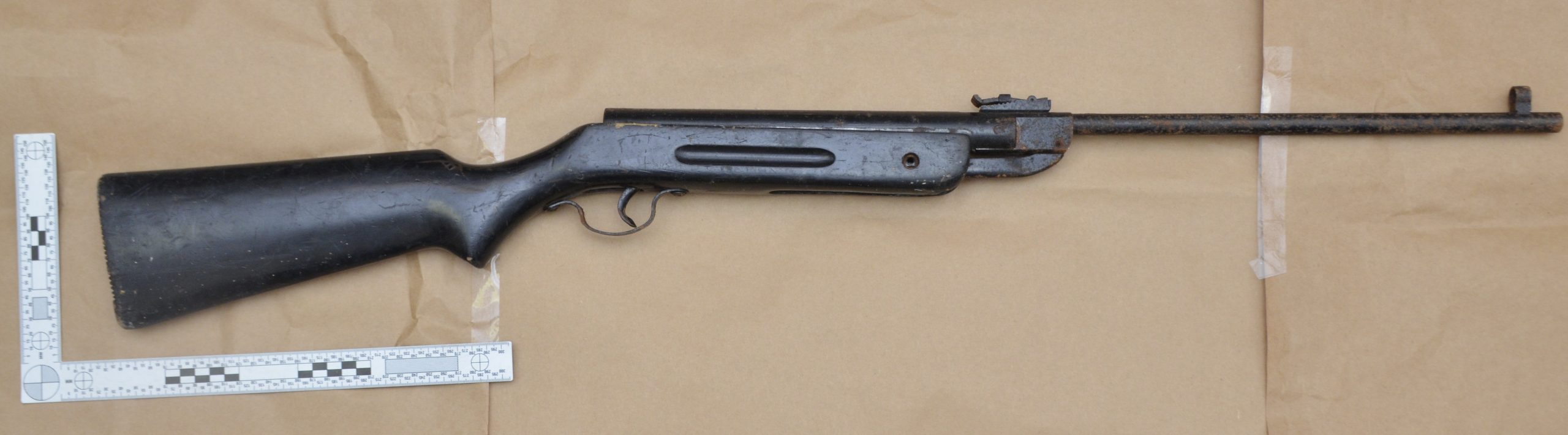 Con base en esta información, los detectives del KPSM obtuvieron autorización y realizaron un registro en la residencia del sospechoso. Durante el registro, los agentes descubrieron y confiscaron lo que parecía ser un rifle.