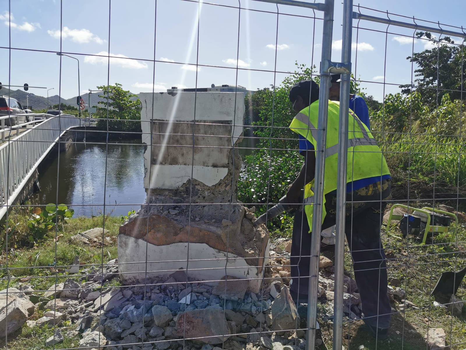 Philipsburg, Sint Maarten – El lunes 4 de marzo de 2024, marca el comienzo de las reparaciones del Puente Prince Bernard dirigidas por el Ministerio de VROMI. En un momento crucial, los equipos de demolición iniciaron la retirada del antiguo monumento que adorna el puente, en preparación para las próximas obras.
