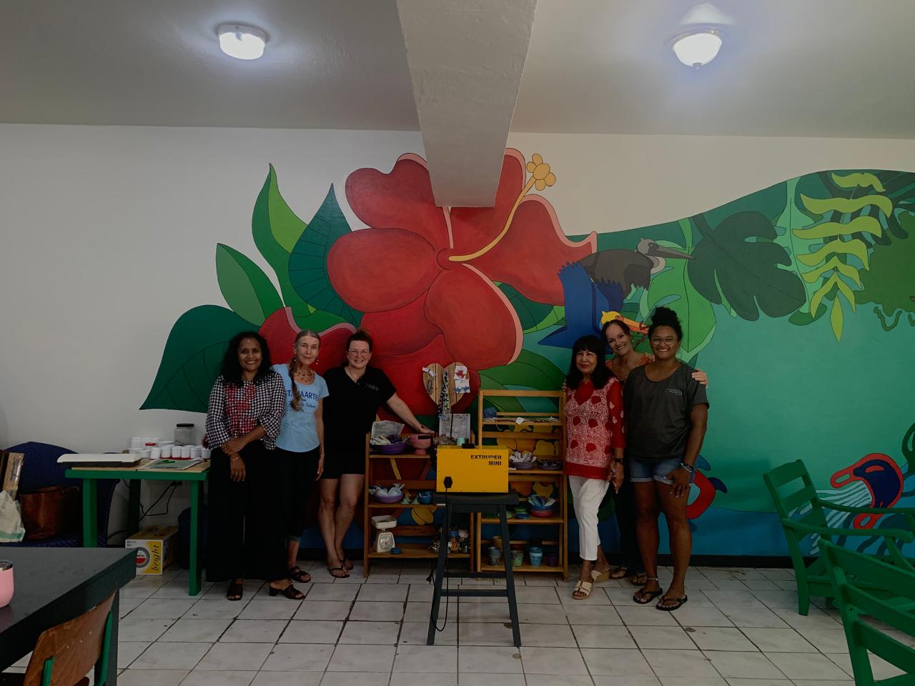Vera Cupen, Jody Rosen y Asha Steven Marieke van Zadelhoff, de Island Gems, visitaron recientemente el sitio del proyecto Perpetual Plastics en Cole Bay para ver las operaciones generales y presenciar cómo se utilizan los moldes.