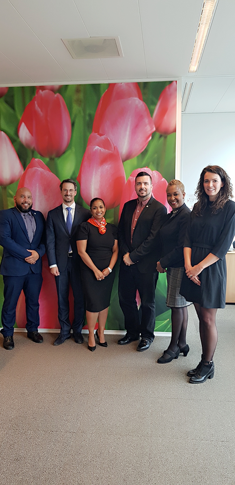 Photo caption: The Honorable Stuart Johnson, (fourth left), Minister of Tourism, Economic Affairs, Transport & Telecommunication (TEATT) is in The Netherlands, Ichel Moeslikan STB Head of Product Development, Thijs de Groot NBTC Manager of Partnership Development, Kelly Busby of Minister Plenipotentiary cabinet, Emilie Zonnevylle (far right) NBTC project manager strategy and branding, Javier Badaracco (far left)of Minister Plenipotentiary cabinet.